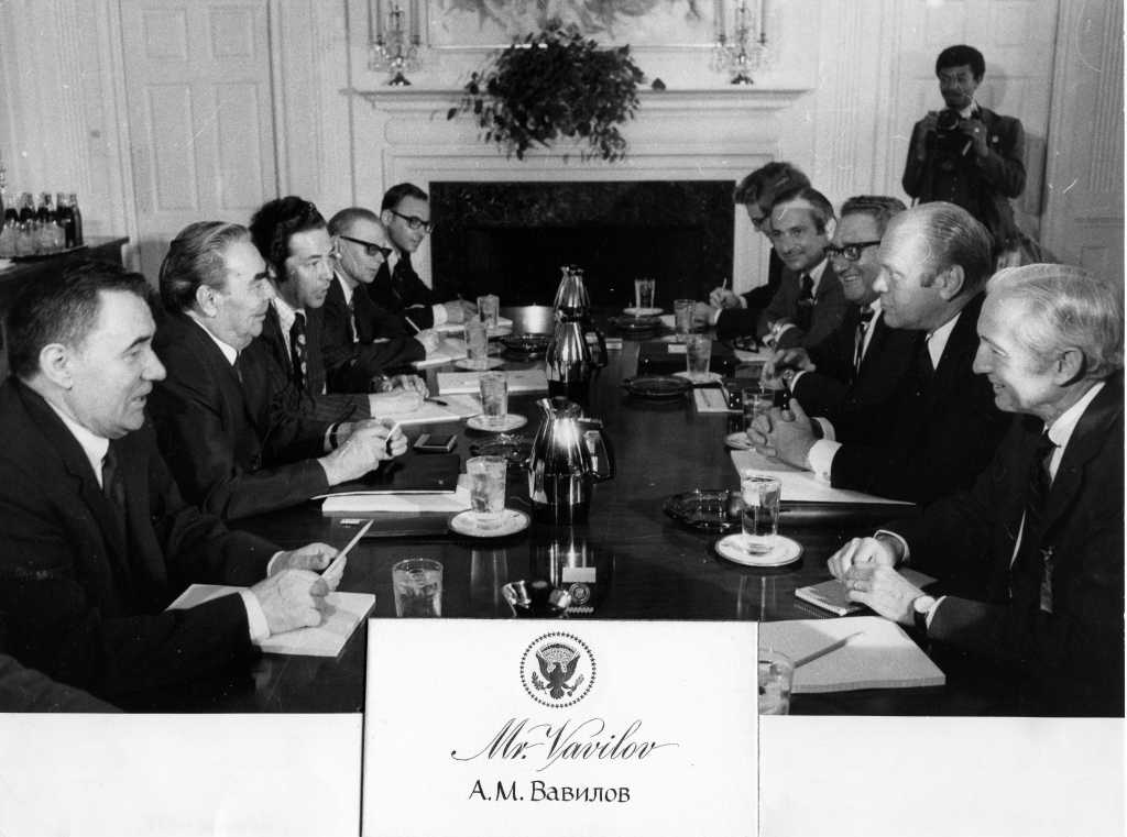 — Верно. Мы переводили первых лиц, а на уровне Громыко, его первого зама Корниенко и руководства госдепа и Совета национальной безопасности — переводили наши коллеги из МИДа. Американских переводчиков физически не было на переговорах, хотя они приезжали с делегацией. Не исключено, что они помогали на более низком уровне — может, документы переводили. Думаю, здесь дело в боязни утечек. Никсон и Киссинджер проводили политику, часто минуя госдепартамент и другие американские ведомства. И прессы они опасались.